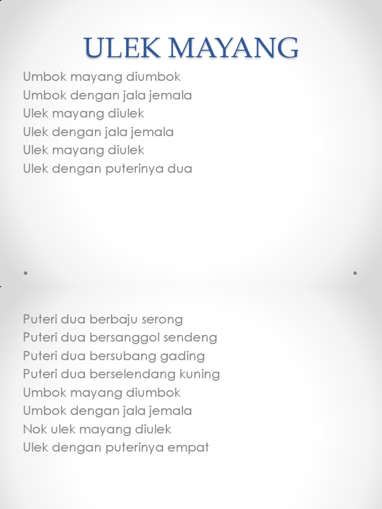 Mitosia Ulek Mayang Ku Ulek Ulek Dengan Jala Jemala Ulek Mayang Diulek Ulek Dengan Tuannya Puteri Ulek Mayang Diulek Ulek Dengan Jala Jemala Ulek Mayang Diulek Ulek Dengan Puterinya Dua Puteri