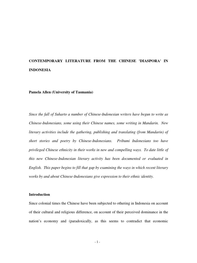 Contemporary Literature From The Chinese Diaspora In Indonesia Indonesia