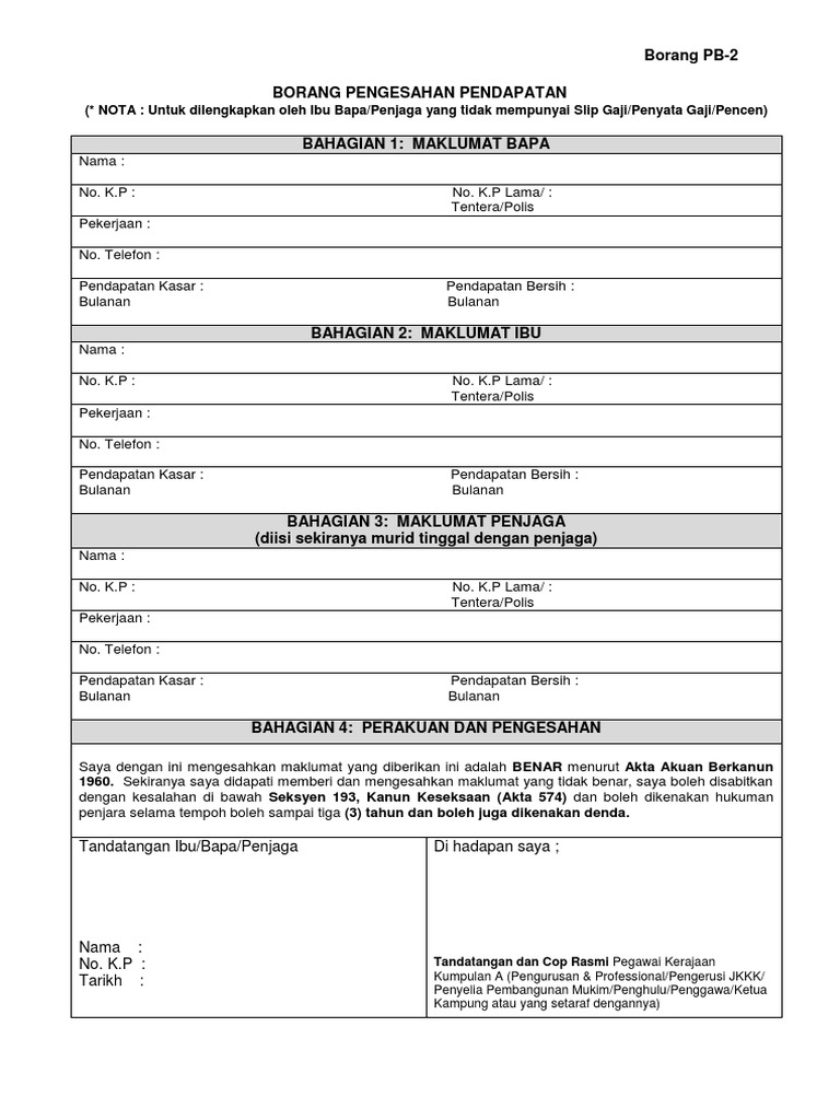 401140001 27 12 2018 Borang Pb2 Borang Pengesahan Pendapatan Pdf Pdf