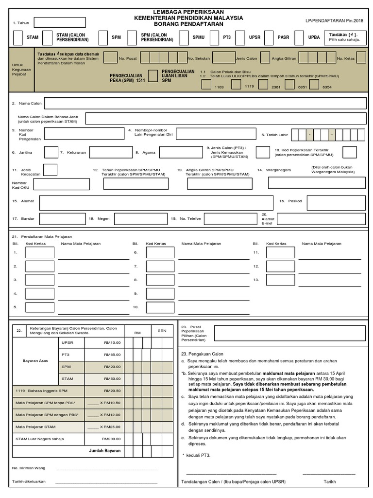 Borang Pendaftaran Peperiksaan 1 Pdf