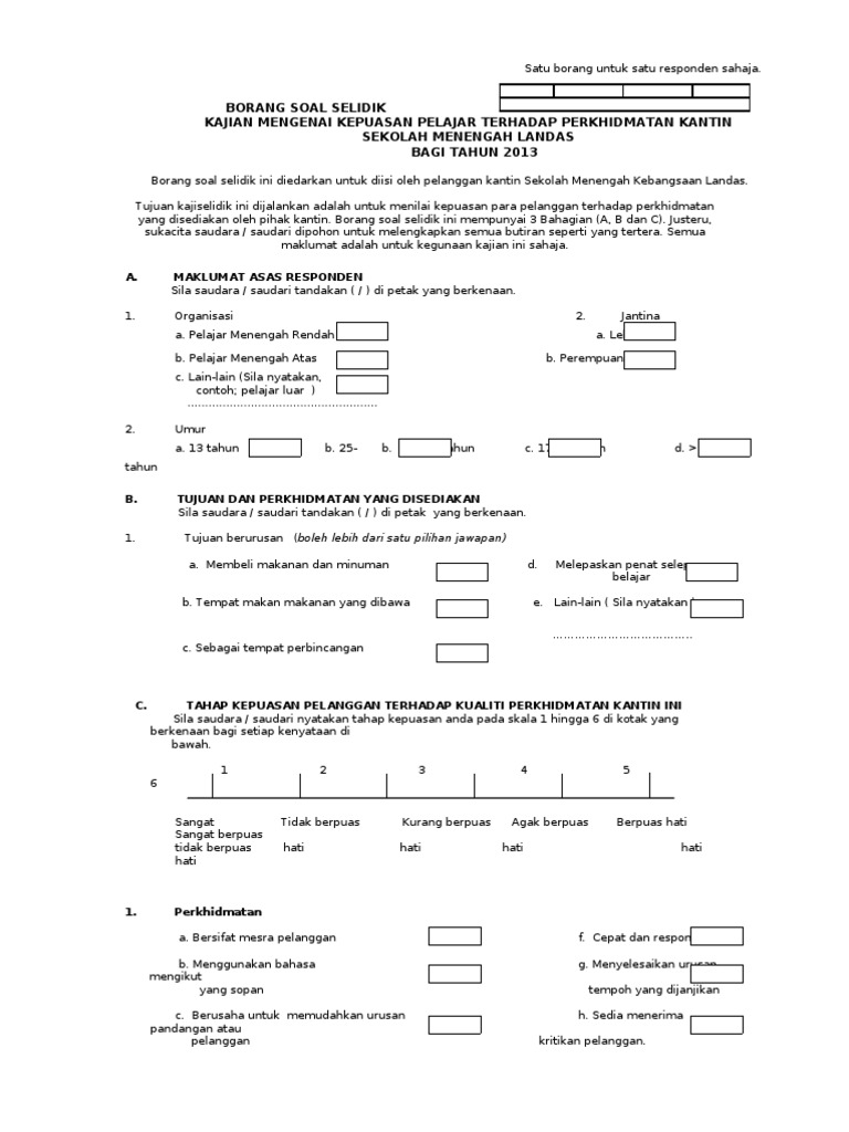 Borang Soal Selidik Kepuasan Pelanggan Terhadap Docx