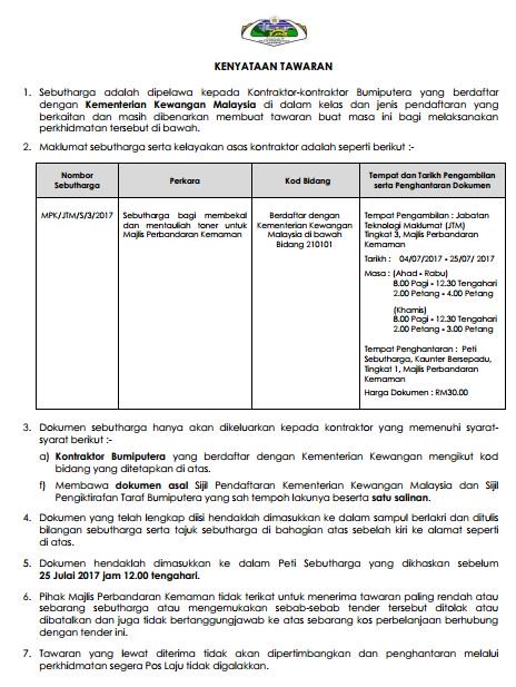 Kenyataan Tender Bagi Kerja Kerja Majlis Perbandaran Kemaman Facebook